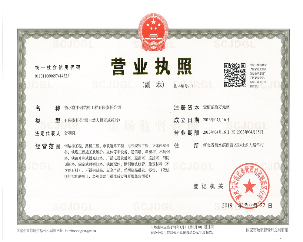 衡水鑫豐鋼結(jié)構(gòu)工程有限責(zé)任公司建于 2003年, 技術(shù)力量雄厚 , 專注生產(chǎn)鋼結(jié)構(gòu)鐵塔系列產(chǎn)品 。本廠具有鋼、鋁塔設(shè)計,制作以及鑄造、鉚焊、鍛壓、熱鍍鋅、防腐等綜合制作能力,在設(shè)計、制作、安裝以及專用設(shè)備方面有豐富的經(jīng)驗。